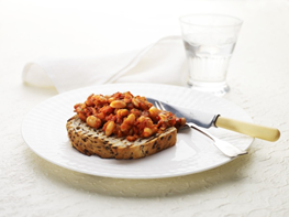 - Baked beans on a wholemeal English muffin
