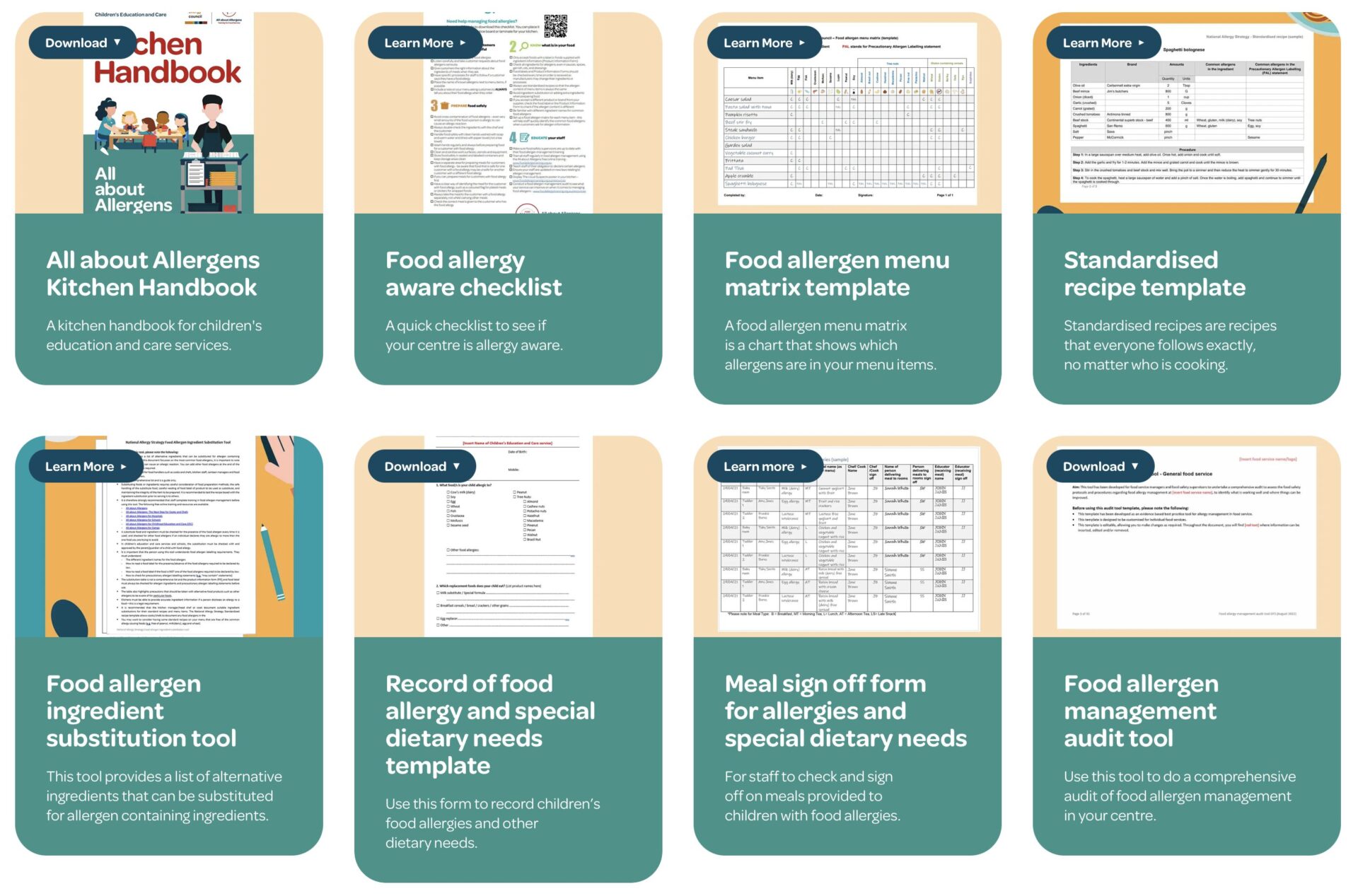 Food allergen management resources for children’s education and care